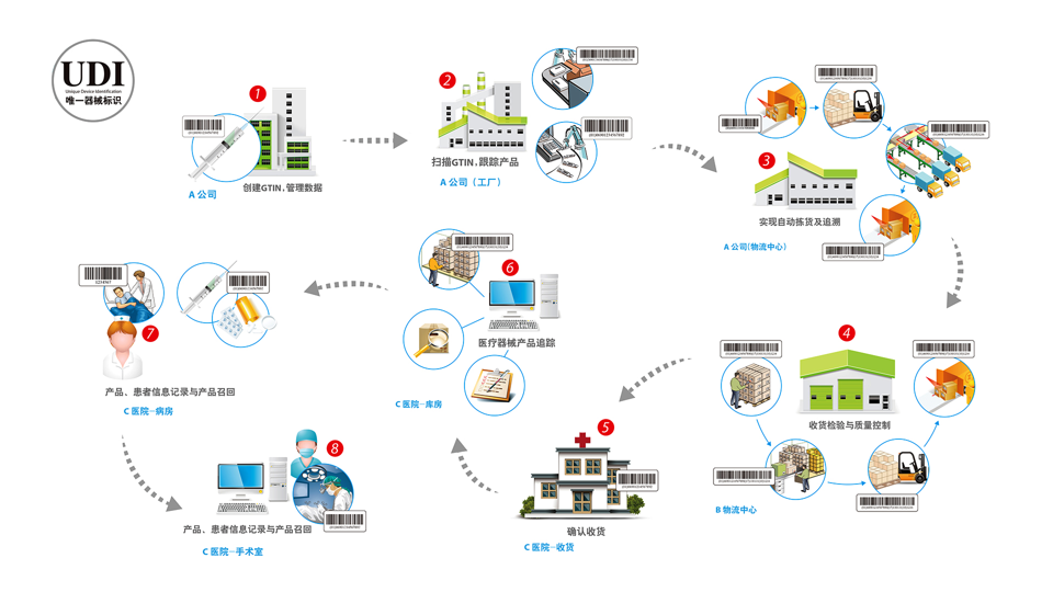 阳光医药追溯云平台遵照国务院、十部委及药监总局对追溯体系建设的意见,符合国家重要产品追溯体系建设的标准、药监总局对医疗器械UDI码试点及其相关标准的要求、《医疗器械追溯系统设计与实施通用要求》的标准要求,满足新颁布《医疗器械管理条例》的追溯要求。它连接医疗器械生产企业、经营企业与使用单位的业务系统,打通天津药监局医疗器械追溯协同服务平台,并通过协同平台与国家药监总局UDI数据库联通,实现了医保码与UDI码映射、追溯信息统一上报、产品全生命周期追溯、UDI智能赋码、流向追踪、精准召回、防伪、防回流、不良事件监测、风险管控、五维十项追溯验证等功能。